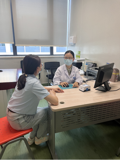 吴玲玲医生(右)在门诊中/浙大儿院供图