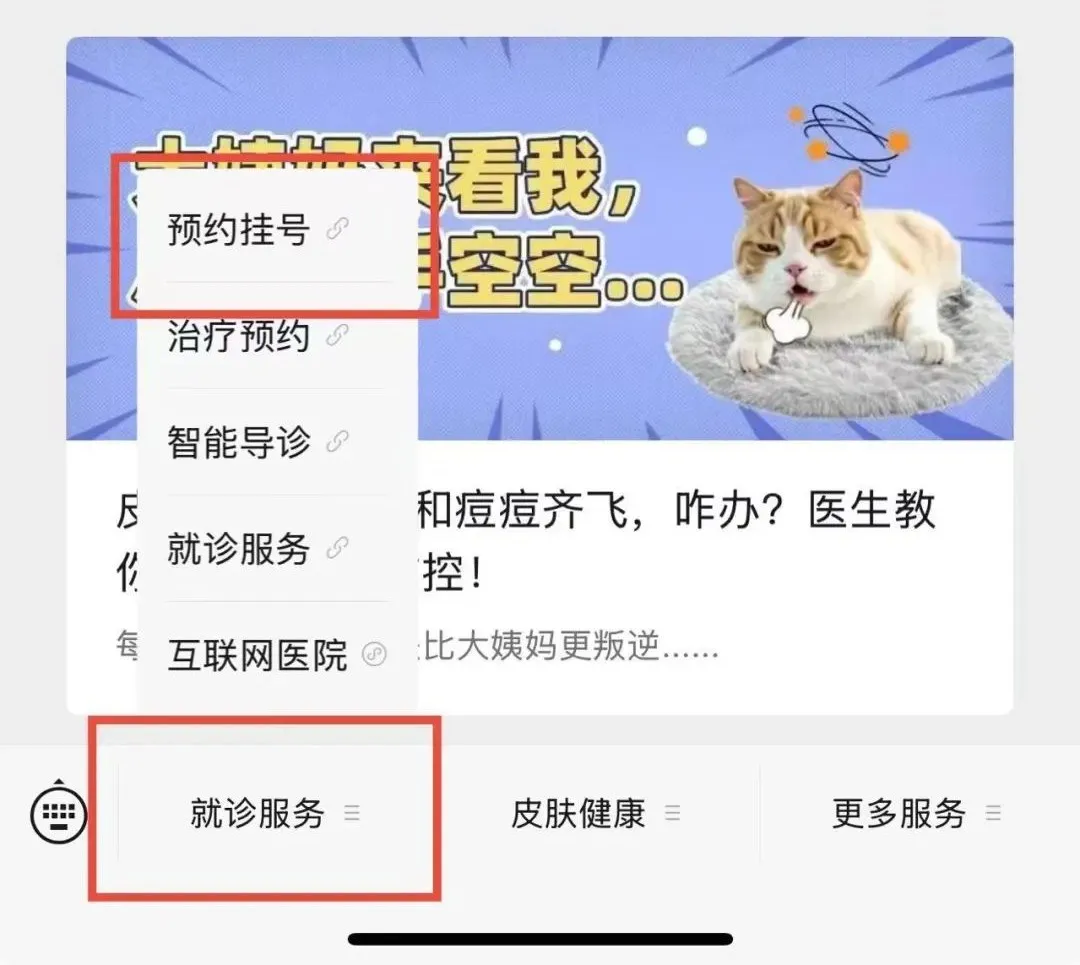 2. 选择菜单栏“就诊服务” → “预约挂号”