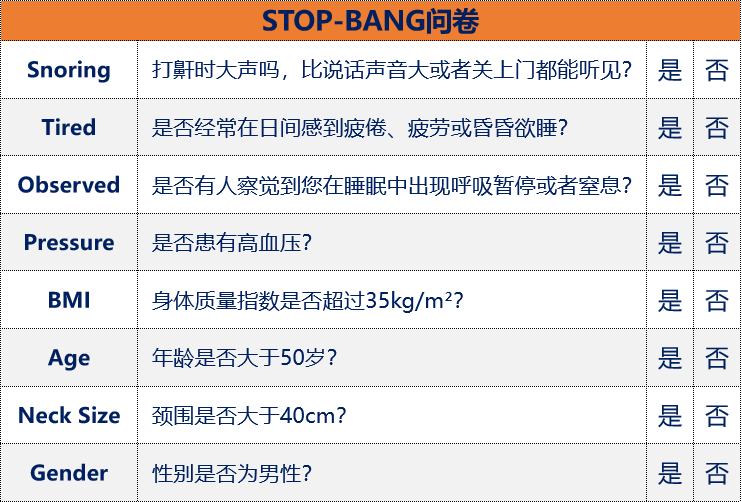 · 如果以上问题你的回答有3项或以上为“是”,那么你属于OSA中高危人群,强烈建议去医院进一步检查。