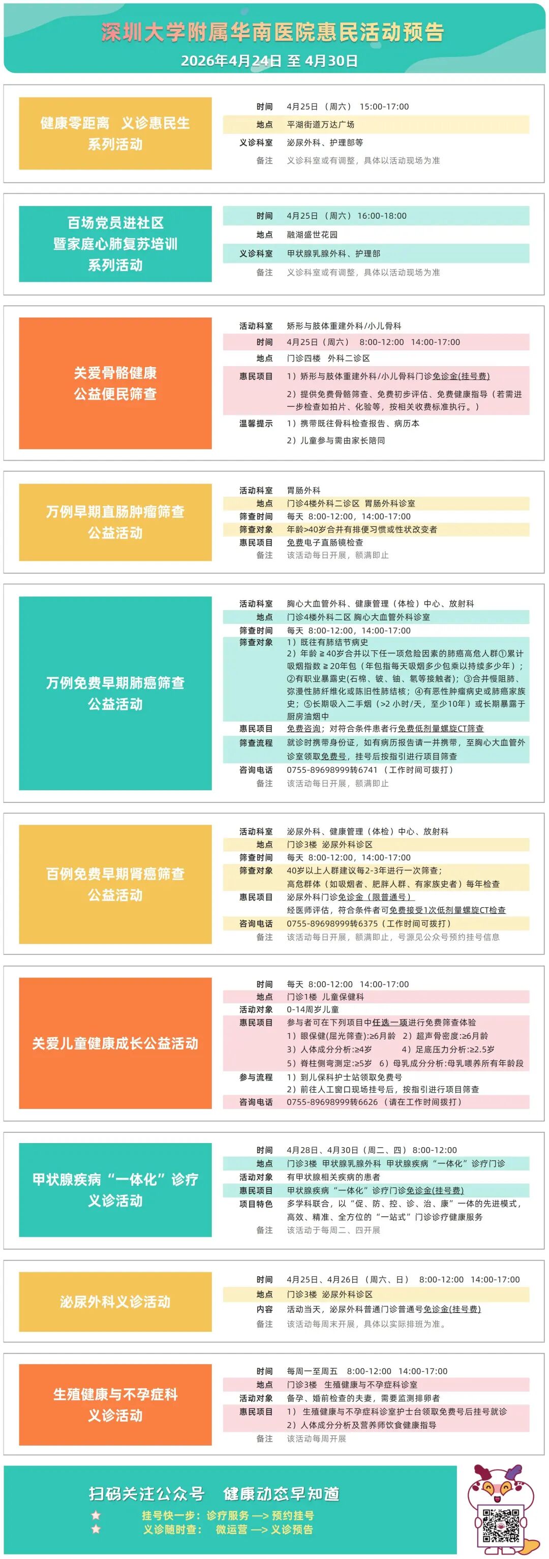 华南公益 | 华南医院4.24-4.30义诊预告