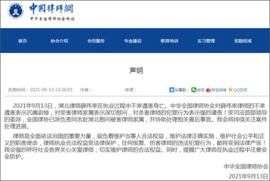 律师是依法治国的重要力量,肩负着维护社会公平和正义的职责和使命,任何对律师的报复和伤害行为,都将受到法律的严惩!