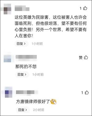 最可气的是,竟然有人开始为杀人犯洗白,称这个行为是为民除害,杀死律师很坦荡。