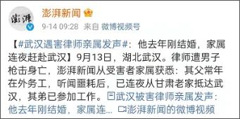 目前,被害律师的家属已经发声,他的父亲常年在外地打工,听闻噩耗后,连夜从甘肃老家赶往武汉,而他还有一个弟弟。