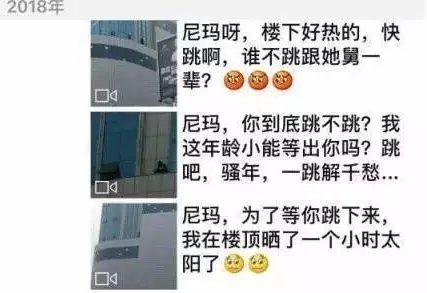 还有人拿出手机疯狂拍照,发朋友圈辱骂女孩,等着她从楼上跳下来。
