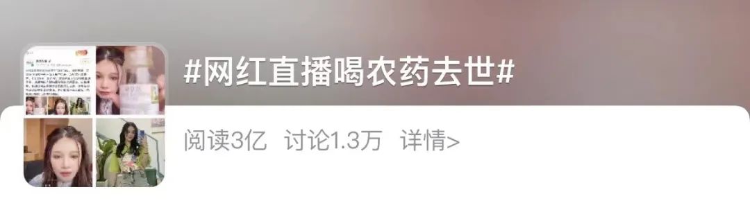 前两天,看到一条“网红直播喝农药去世”的热搜,久久没缓过来。