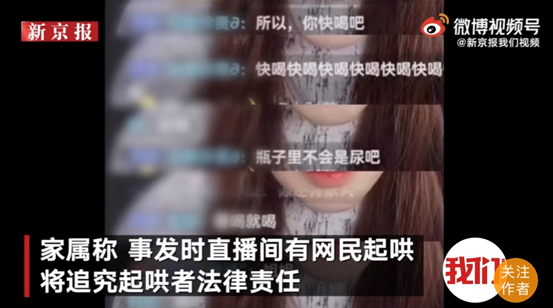 可闹事者对她的痛楚视而不见,有人在质疑她炒作,有人则落井下石,教唆她喝下农药:“你快喝吧”、“快喝快喝”……