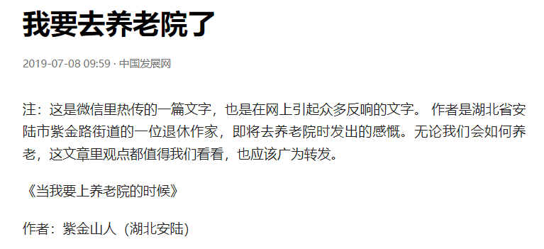 文章的作者,是湖北省一位78岁的退休作家,在第二天要去养老院时发出的感慨。