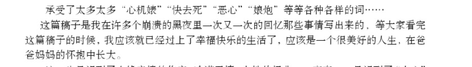 这些标签虽然都是黑暗的,但的确是我最真实的经历,我在努力寻找一些阳光的标签给自己贴上,但是却发现好像剩下的唯一标签就是“坚强”。