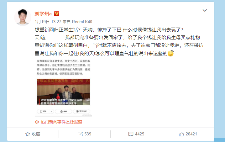 不停在网上和媒体、和网友、和亲生父母对线: