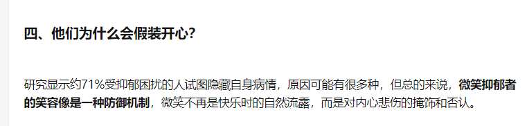 这时候很多人才意识到,原来他一直看起来的坚强阳光只是装出来的,就和很多抑郁症患者一样,微笑只是他们用来隐藏悲伤的工具: