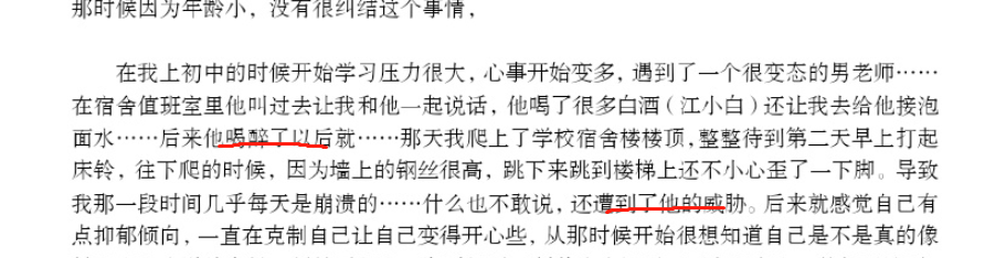 初中遭遇变态男老师的猥亵。