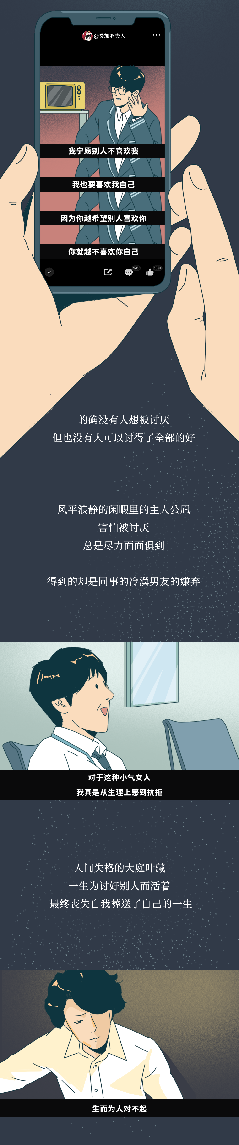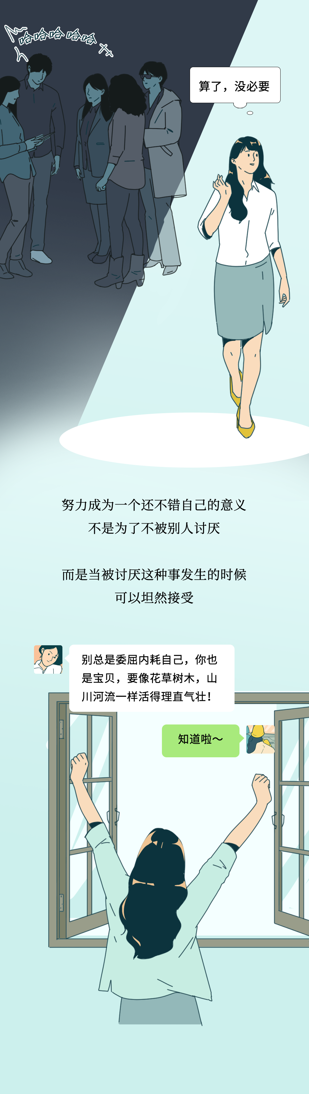 所以不必为被人讨厌而烦扰、内耗自己,健全的自卑感是与“理想的自己”进行比较,而非与他人的比较。今天这篇用写在《被讨厌的勇气》封底的话作为结尾再适合不过了--“所谓的自由,就是被别人讨厌”。