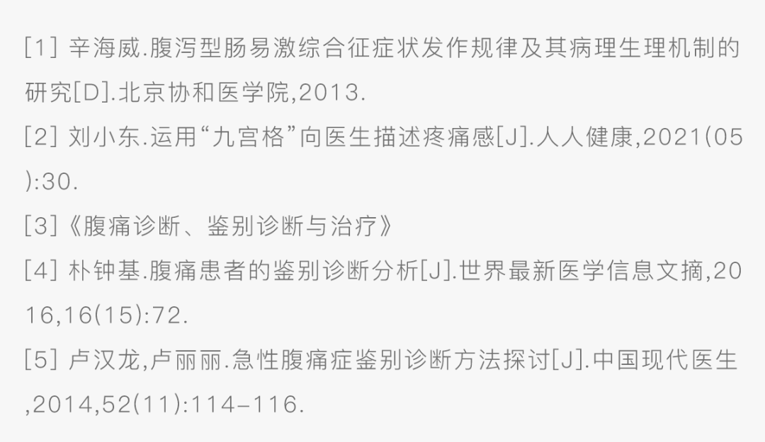 [5]卢汉龙,卢丽丽.急性腹痛症鉴别诊断方法探讨[J].中国现代医生,2014,52(11):114-116.