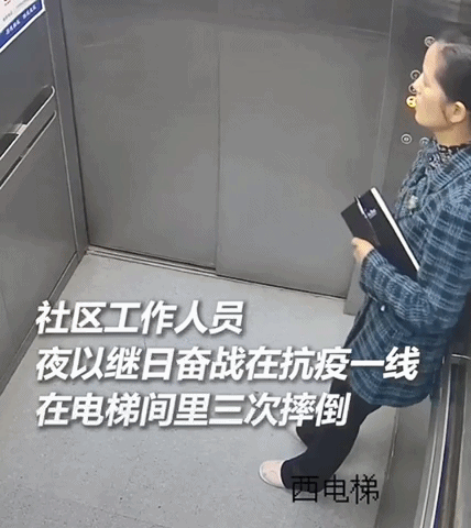 一位基层社区工作者高英,因为连续多日过度疲劳在电梯中多次摔倒。
