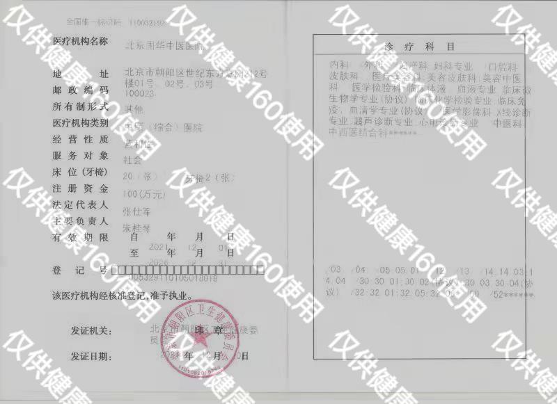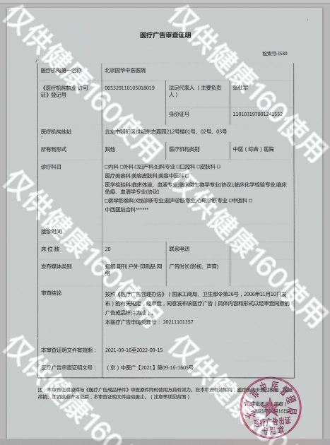 北京国华中医医院是一家集医疗、科研、预防、保健、康复于一体的综合中医医院。“融汇中西医术,造福天下苍生”是北京国华中医医院的办院愿景;“大医精诚,惠泽民众”是北京国华中医医院的工作和诊疗目标。医院实行“无假日医院”服务模式,开展医生一对一就诊服务、网络预约咨询和医生预约服务等,为患者提供最便捷的私密问诊。同时,突出优质、实效、平价的医疗原则,坚持“一切以病人为中心”的服务方针;推行全流程贴心导诊,想患者之所想,急患者之所急,帮患者之所需,竭诚为来自中国各地的患者提供周到、便捷、温馨的医疗保健服务。